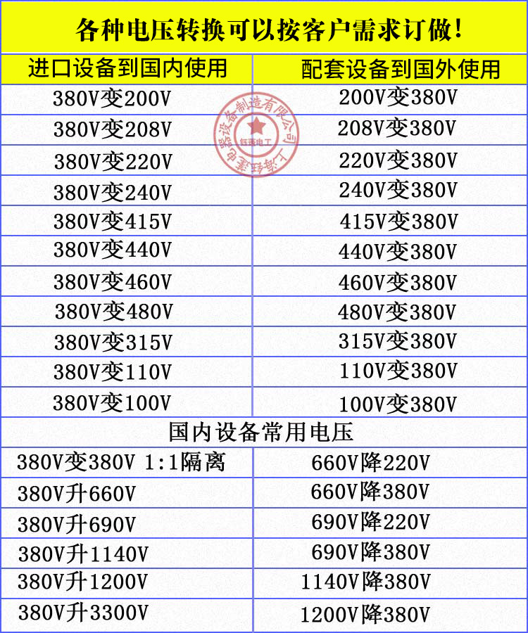 廣泛用于國外重要設(shè)備、精密機床、機械電子設(shè)備、醫(yī)療 設(shè)備、整流裝置,照明等。產(chǎn)品的各種輸入、輸出電壓的高低、聯(lián)接組別、