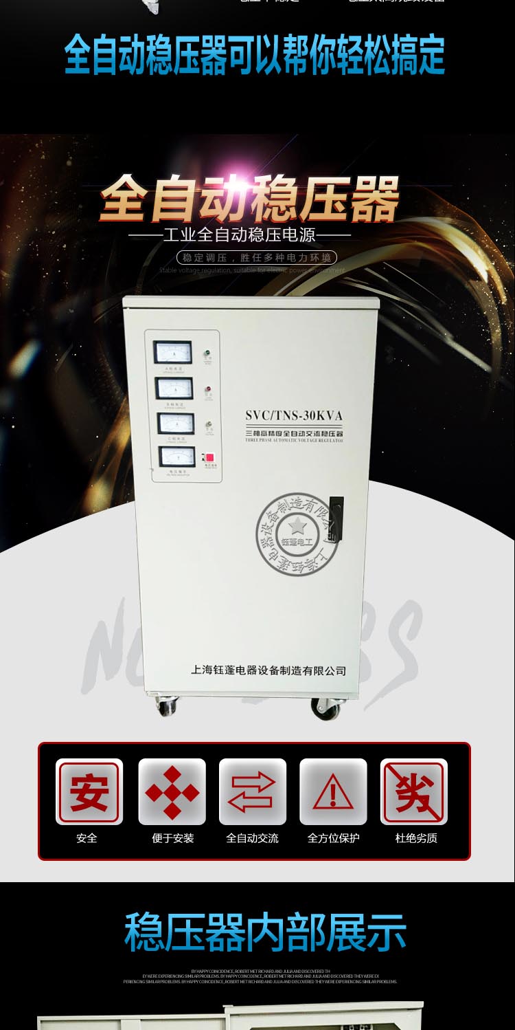 4、當用電設(shè)備長期不用時,請關(guān)閉用電設(shè)備的電源開關(guān),以減少耗電和延長穩(wěn)壓器的使用壽命。