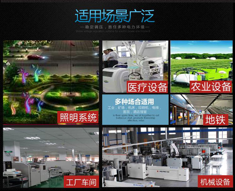 該系列穩(wěn)壓器適用于工業(yè)、農(nóng)業(yè)、醫(yī)療、廣播電視、通訊通信、科研、文化等領(lǐng)域的中小型機電設(shè)備、生產(chǎn)流水線、建筑機械、微機、刺銹、空調(diào)、冰箱、音響、